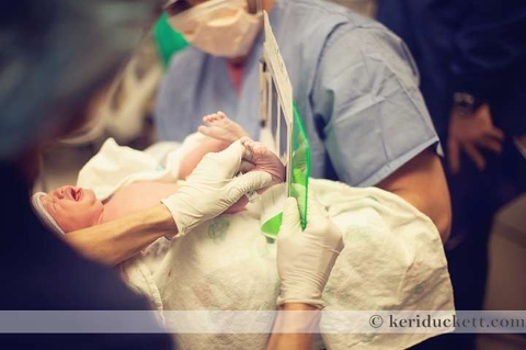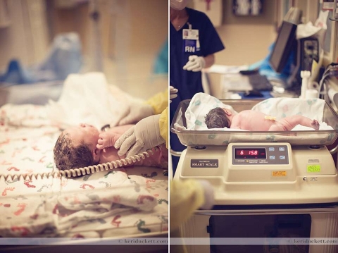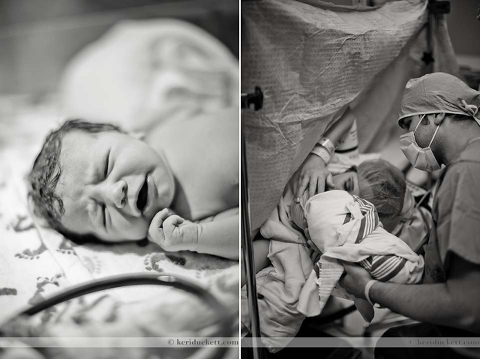 It was 8am on April 18th, 2013.  I wasn’t due until April 27th.  For two days I had been uncomfortable, tired and unable to sleep, and hurting.  Contractions had started and at first were thirty minutes apart, then the next day they were 15 minutes apart.  When I woke up on April 18th I started counting them again…7 minutes apart.  I got comfortable, took a shower and did my makeup, and waited.  I called my husband home from work that day around 3pm and decided to head to the hospital to get checked out.  We left around 4pm and our parents waited to hear news.  After 10 minutes the nurse said we were staying and the doctor was being called in.  We called our mom’s to go pick up our kids from school and head to the hospital.  After three years of trying, 3 miscarriages, three surgeries, and 10 months of doctors appointments we were about to meet our Lola.  I am so grateful to Monica with the Keri Duckett Birth Photography Group for capturing the birth of our sweet baby, to Dr Nackley at the Center for Assisted Reproduction for helping us get pregnant,  and to Dr Flowers for being the best ob/gyn ever.  We welcome you to our family Miss Lola and we love you more than you could ever imagine.